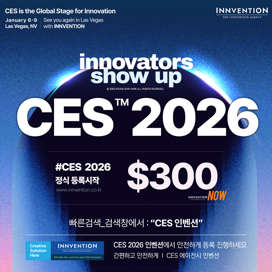 CES 2026 정식 참관등록 오픈 (2025년 12월 31일 월요일까지 할인등록) ㅡ CES 2026 참관등록이 시작되었습니다 현재 인벤션에서 사전등록 접수중입니다. 본 참관등록은 25년 12월 31일까지 진행합니다(할인등록)